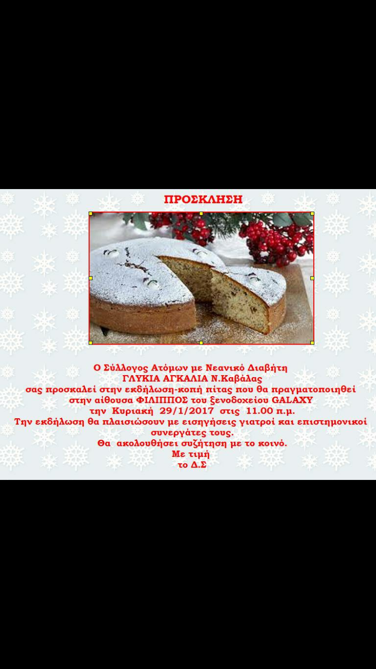 Μια πολύ ωραία εκδήλωση πραγματοποιήθηκε την Κυριακή 29/01/17 στην Καβάλα από το Σύλλογο Ινσουλινοεξαρτώμενων Ατόμων με Νεανικό Διαβήτη Τύπου 1 Ν. Καβάλας “Γλυκιά Αγκαλιά".